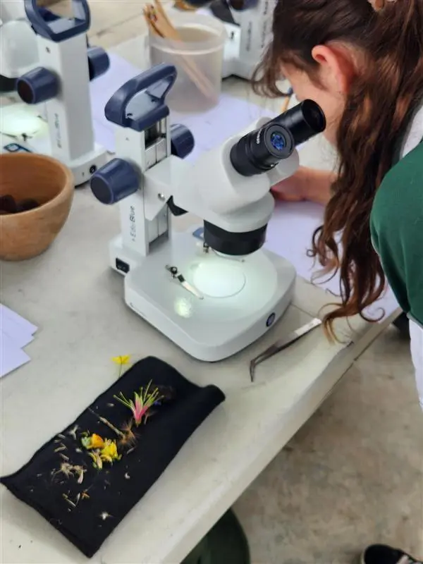 Students take a closer look at different kinds of seeds and flower structures as part of celebratory activities during a Seed Harvest Handover event held at Nakunbalook Environmental and Cultural Education Centre, Sale, Victoria.