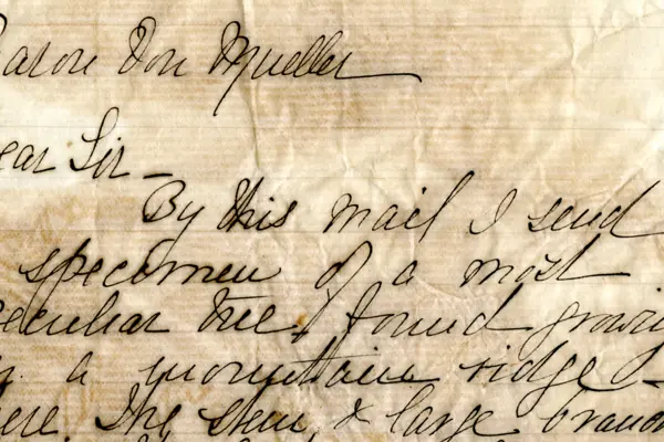 Baron Ferdinand von Mueller was Victoria's Government Botanist for 43 years, the first Director of the Melbourne Botanic Garden from 1857–1873, and one of Australia's best-known nineteenth-century scientists. Mueller corresponded prodigiously with individuals all over the world and is believed to have written well over 100,000 letters to his network of correspondents.